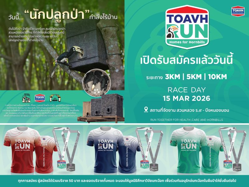 TOAVH RUN X HOMES FOR HORNBILLS ขอเชิญชวนเพื่อนๆ ร่วมลงทะเบียนวิ่งในงาน TOAVH RUN 2026: Homes for Hornbills